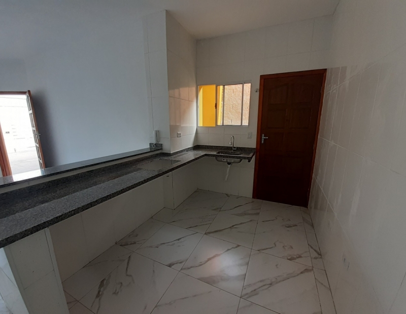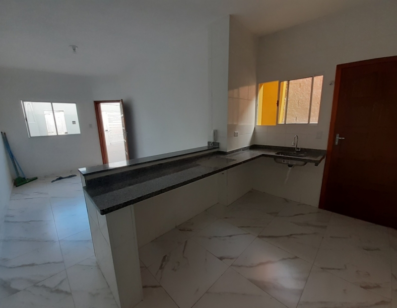Linda casa com 2 dormitórios, sendo 1 suíte, wc social, sala e cozinha americana. A cozinha possui pia, balcão, bancada e cooktop 5 bocas.