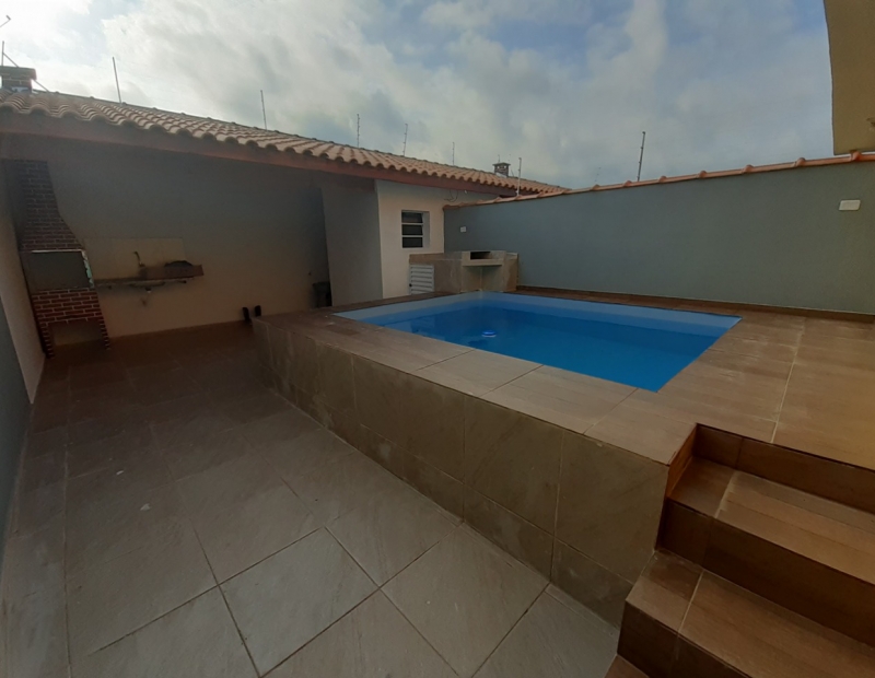 Bela piscina, área de churrasqueira coberta, lavabo.