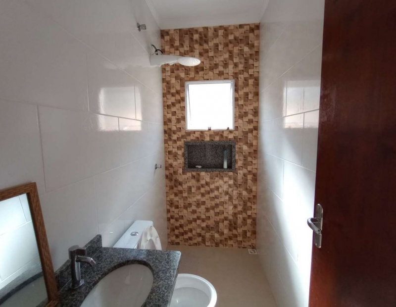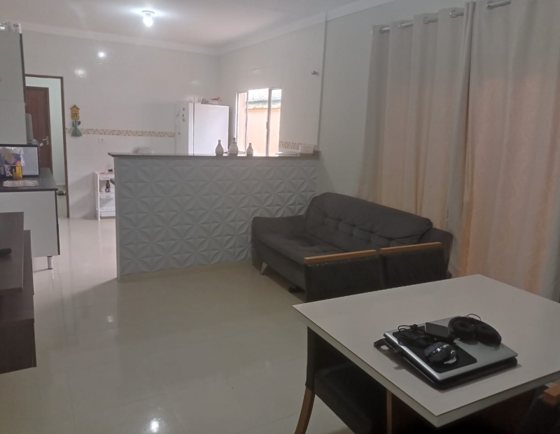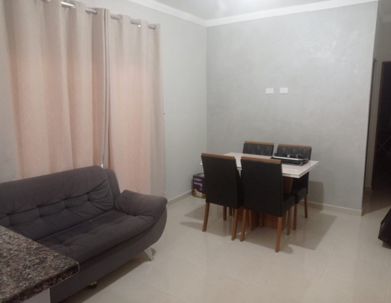 São 2 dormitórios, sendo 1 suíte, wc social, sala e cozinha americana.