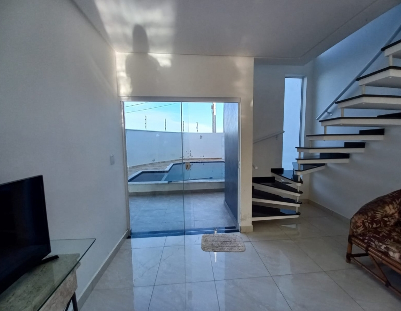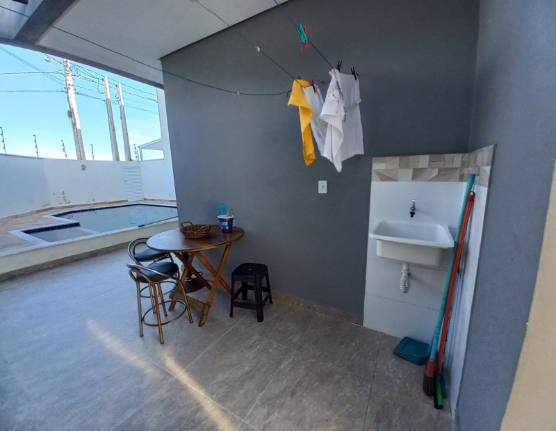 O imóvel possui ainda churrasqueira, lavanderia e uma linda piscina.