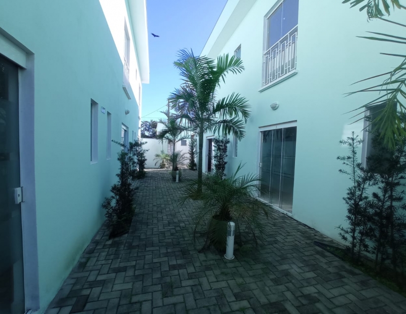 Térreo com sala e cozinha americana, lavabo, pequeno quintal nos fundos