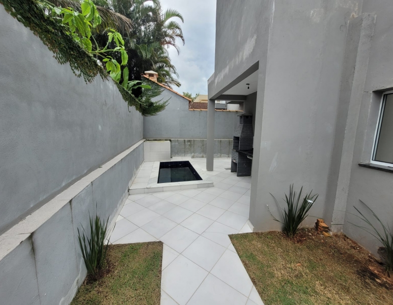 Quintal espaçoso, piscina, churrasqueira e lavabo.