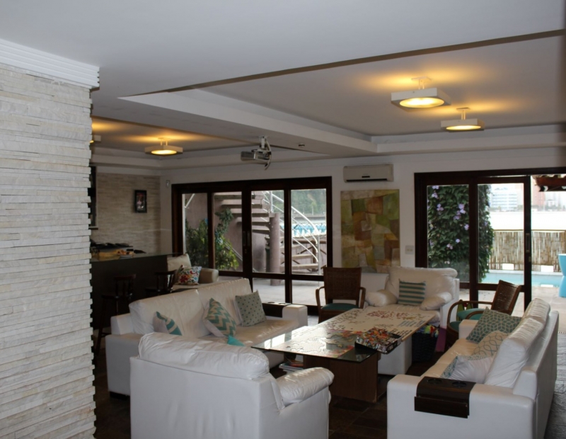 O imóvel conta com 6 suítes, todas com varanda e vista para o mar. O piso térreo possui varanda, cozinha planejada, lavabo, jardim de inverno, área gourmet, solário e uma linda piscina medindo 11x3, 6 metros e 3 alturas diferentes, com borda infinita.