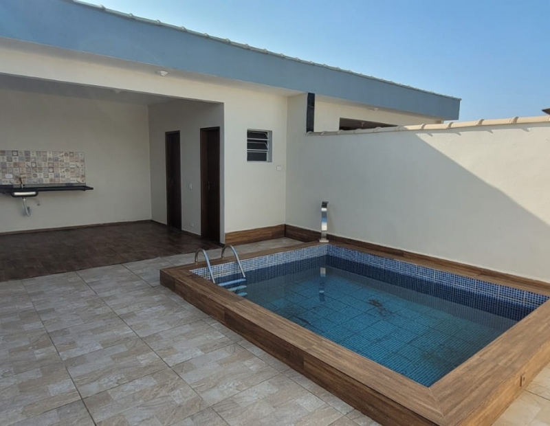 Linda piscina e área de churrasqueira.