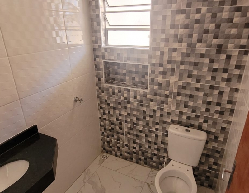 São 2 dormitórios sendo 1 suíte, wc social, sala e cozinha americana.