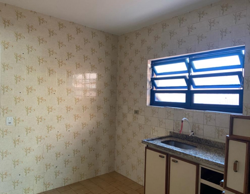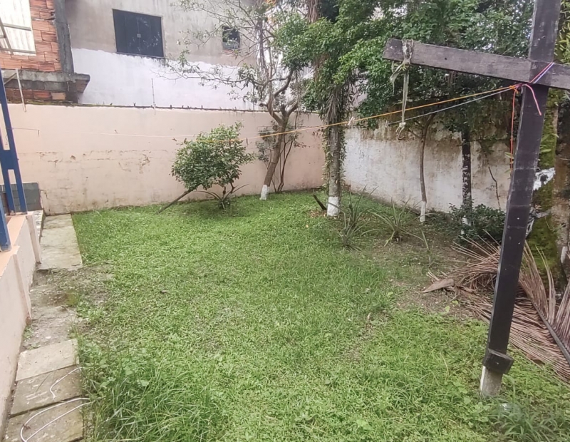 Quintal amplo com árvores frutíferas, área de serviço coberta, churrasqueira e garagem para cerca de 2 veículos.