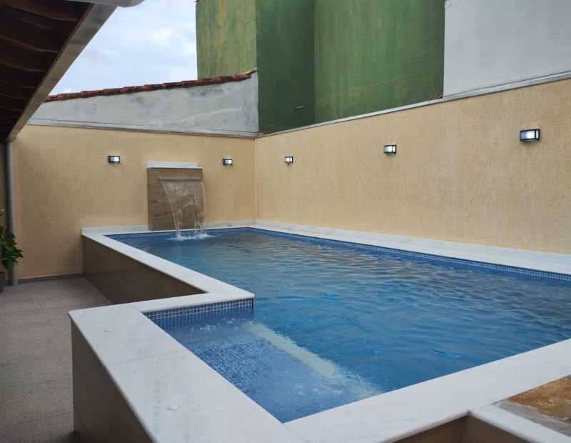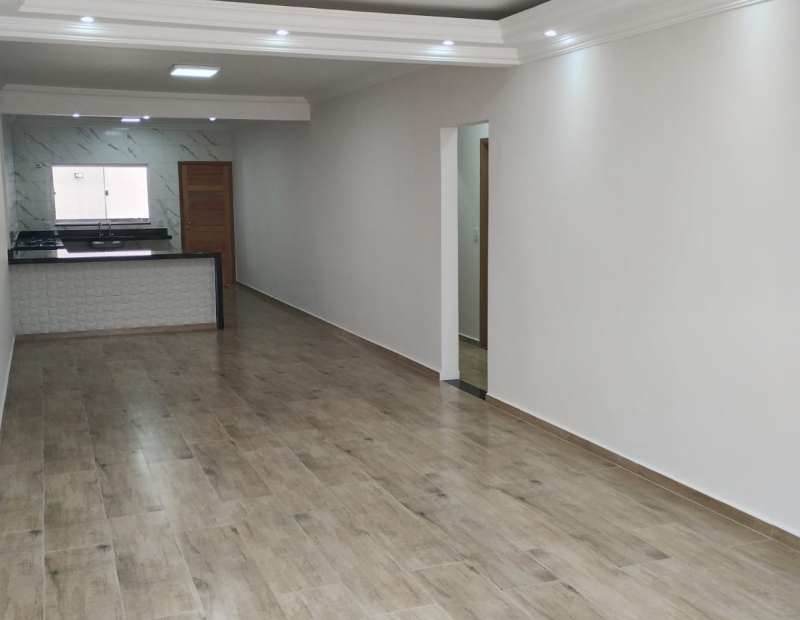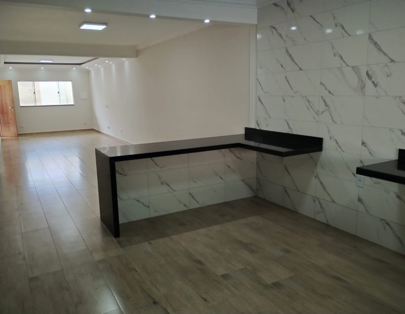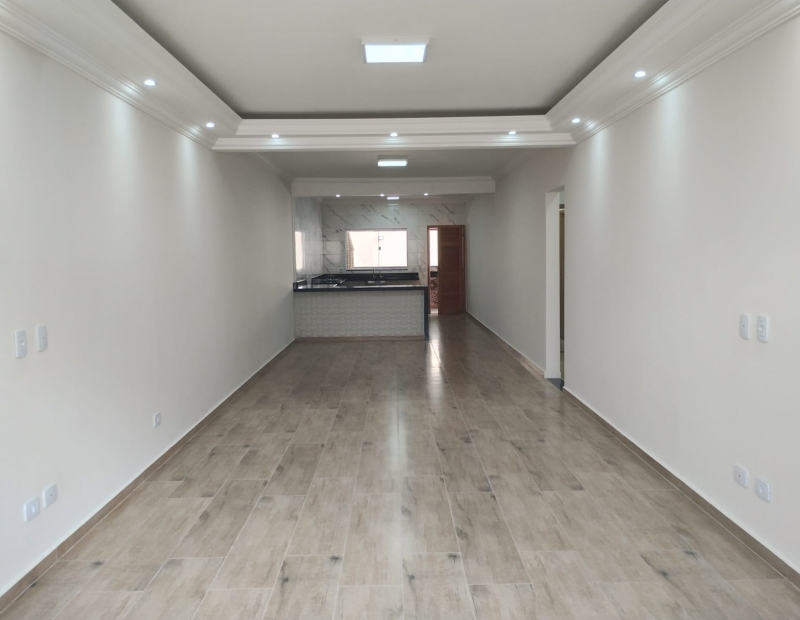 Sala ampla, cozinha, área de serviço coberta e lavabo