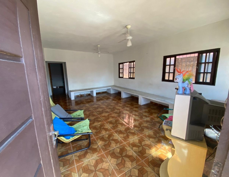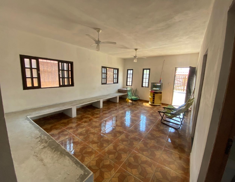 Quintal amplo, garagem para cerca de 3 veículos. Imóvel localizado cerca de 2 km da praia.