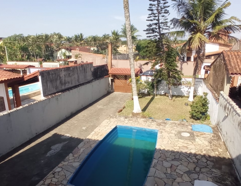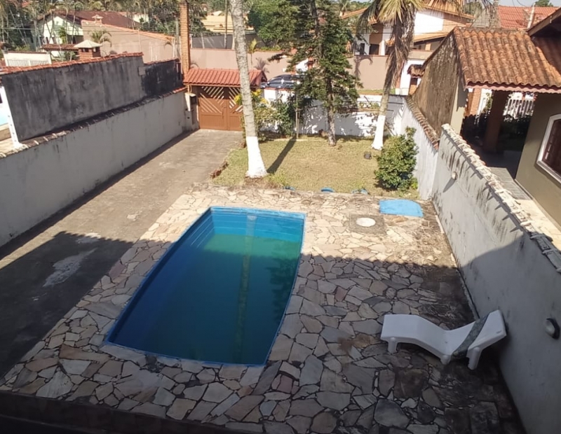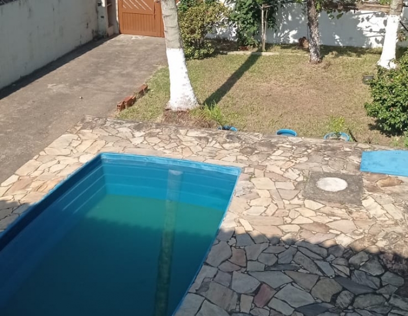 Quintal amplo, com piscina e churrasqueira. Garagem para cerca de 5 veículos.