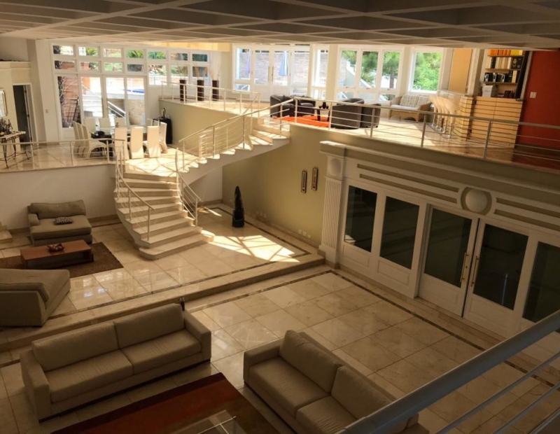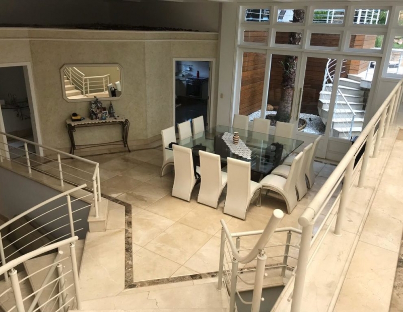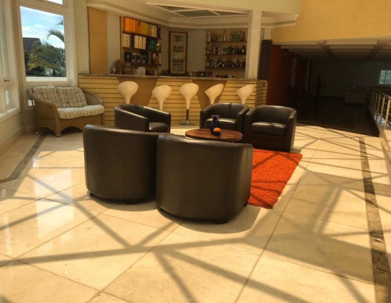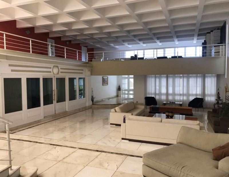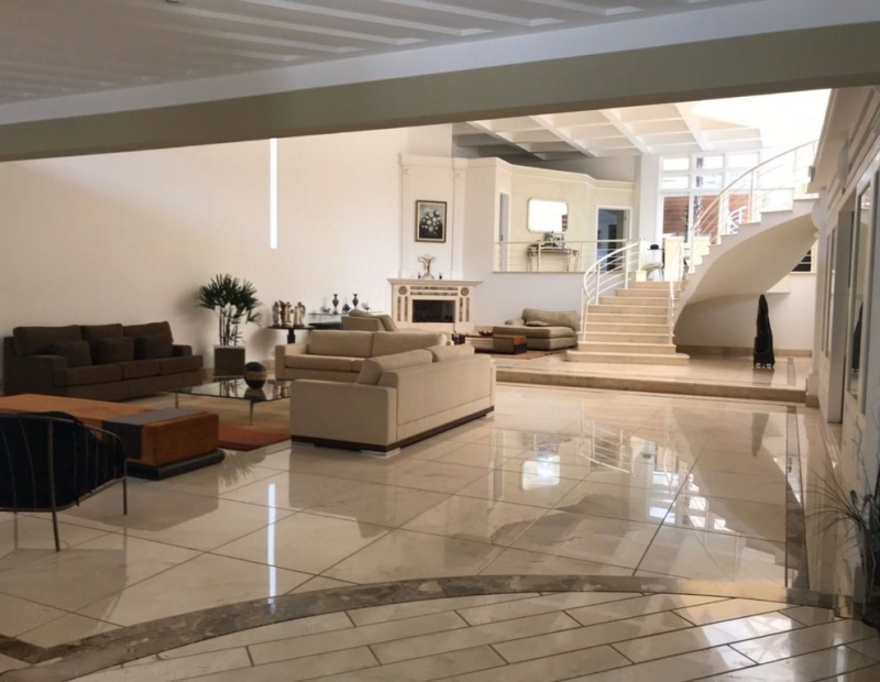 Possui sala de tv, sala de estar, sala com lareira, sala de jantar e lounge com bar. Escritório, cozinha com despensa mobiliada, área de serviço, quarto de empregada com wc e depósito.