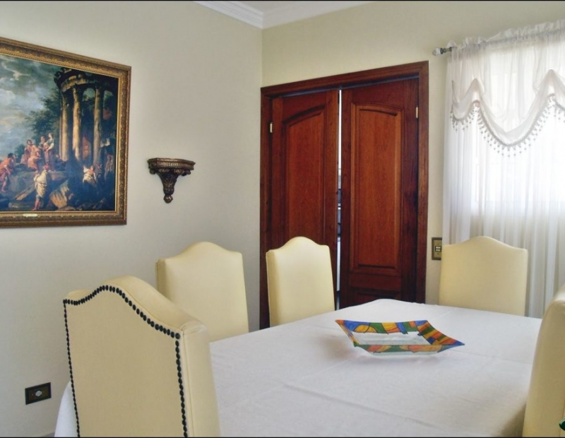 Cozinha equipada e despensa. Sala de estar, sala de jantar, sala de cinema e biblioteca. Todos os ambientes são decorados com toque renascentista italiano.