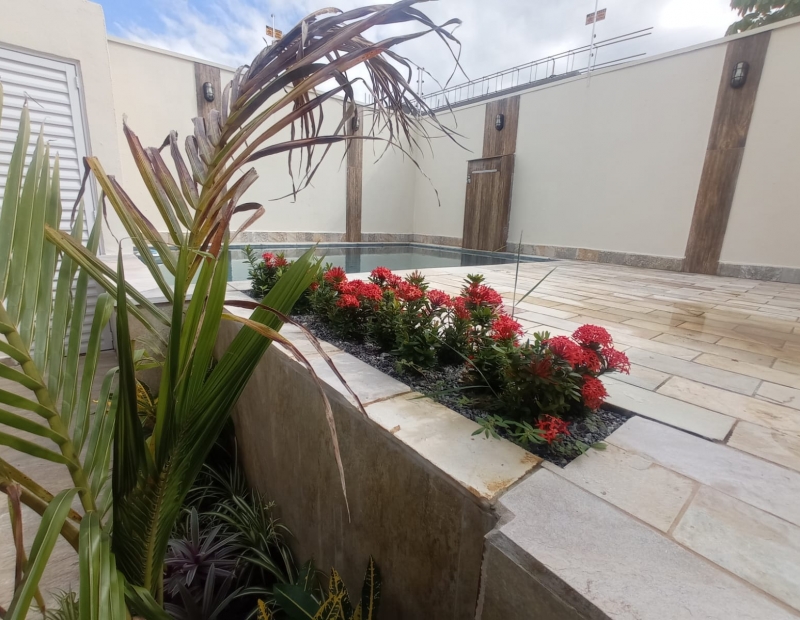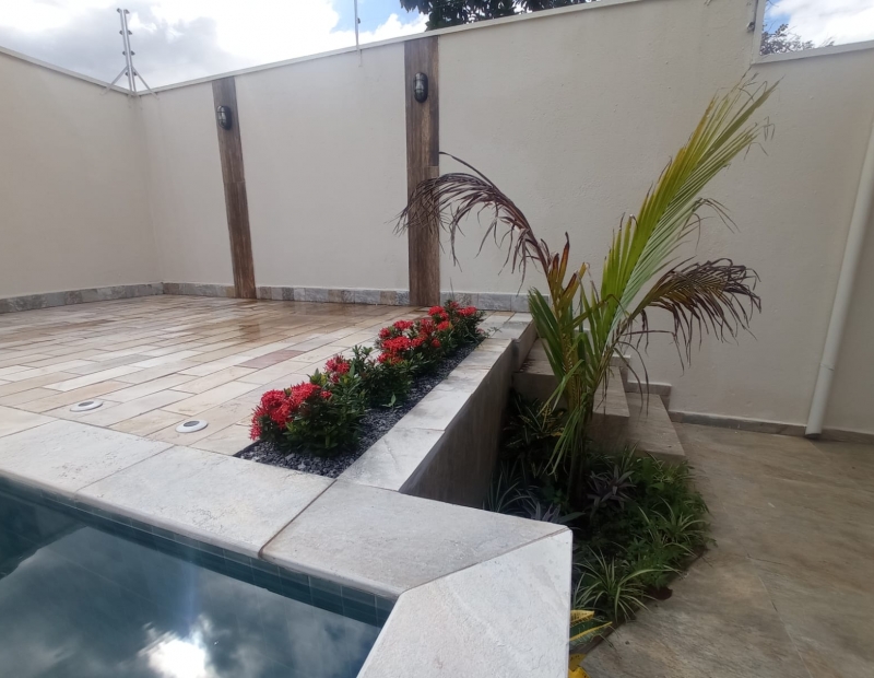 Garagem para 2 veículos, quintal lateral externo, com acesso a área de serviço independente e coberta. Nos fundos há uma belíssima área de churrasqueira com lavabo para atender a área externa e piscina para desfrutar com sua família e criar lindas memórias!