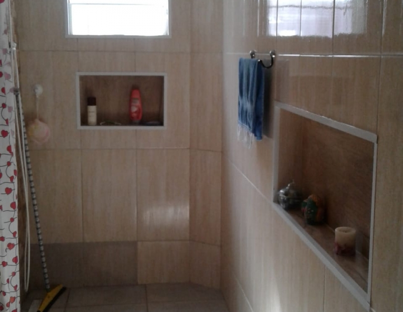 Garagem para 2 autos, quintal amplo, com porta lateral.